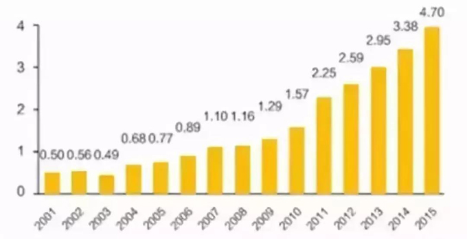 國(guó)家旅游局?jǐn)?shù)據(jù)顯示,2008年國(guó)內(nèi)旅游人數(shù)20億人次,2015年達(dá)40億人次,7 年翻一番。2015年共有41.2億人次國(guó)內(nèi)或出境游,相當(dāng)于全國(guó)人口一年旅游近3次。